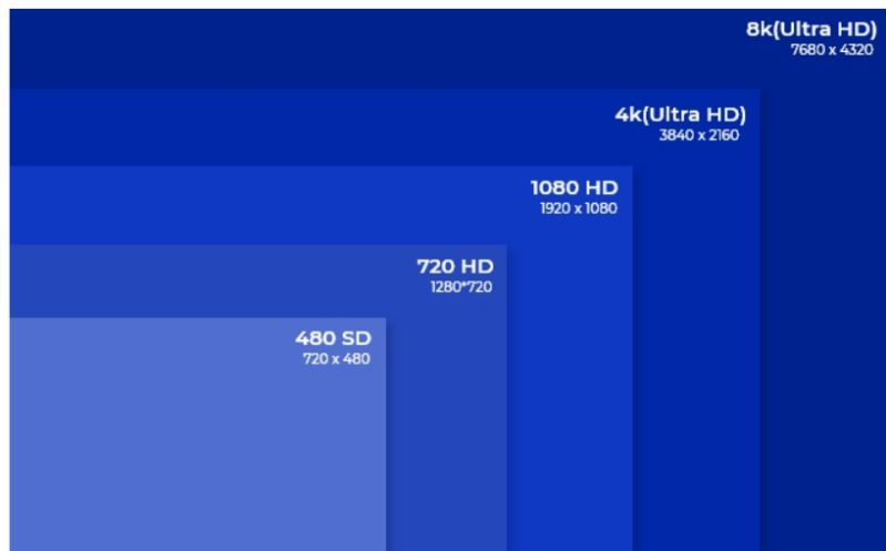 Pixelation determines resolution and how clear and precise your avatar comes across, along with the other imagery. There are various categories of resolution based on specific definitions of pixelation. In the chart below, sourced from reolinkcom, you can see the evolution of resolution based on pixelation from 480 pixels and 720 pixels—both under the high def (HD) threshold---to Ultra High Definition (UHD) resolution.